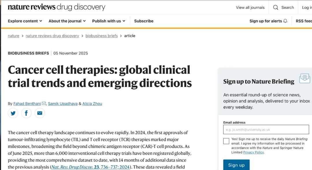 [集团动态] 集团研发院进行第66次集体学习,美国癌症研究所NATURE最新发文《肿瘤细胞疗法:全球临床试验趋势与新兴方向》